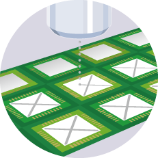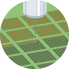 銀ペースト塗布の微小化、高速化に取り組み続けてきた豊富な経験から、安定塗布を実現します。