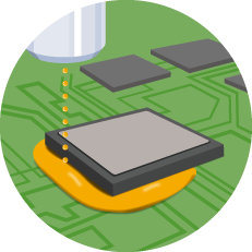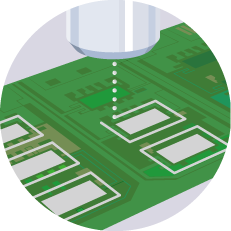 高粘度材料も狭いピッチでの塗布もQuspaにお任せ。強力な補正システムが安定塗布をサポートします。