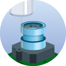 非接触式だから、キャビティー構造や狭い場所への塗布も実現。高い位置精度でターゲットを逃しません。